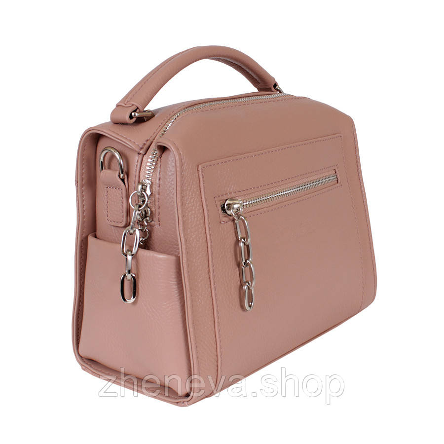 Маленька елегантна сумочка має бути в гардеробі кожної жінки. Ця модель не тільки красива, а й зручна! Завдяки одному великому відділенню сумочка містка. У комплекті є 2 довгі ремені — широкий текстильний і вузький шкіряний. Це дасть Вам змогу поєднувати сумку з різними стилями! Бігунки прикрашені декоративними ланцюжками. Є всі потрібні кишені. Усередині 2 кишені на блискавці та 2 кишені без застібки. Зовні з обох боків додаткові кишені на змійці.